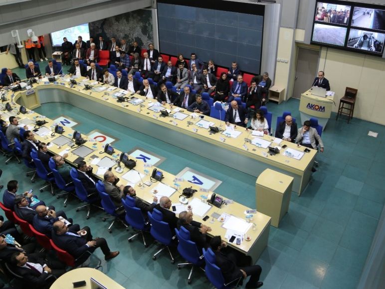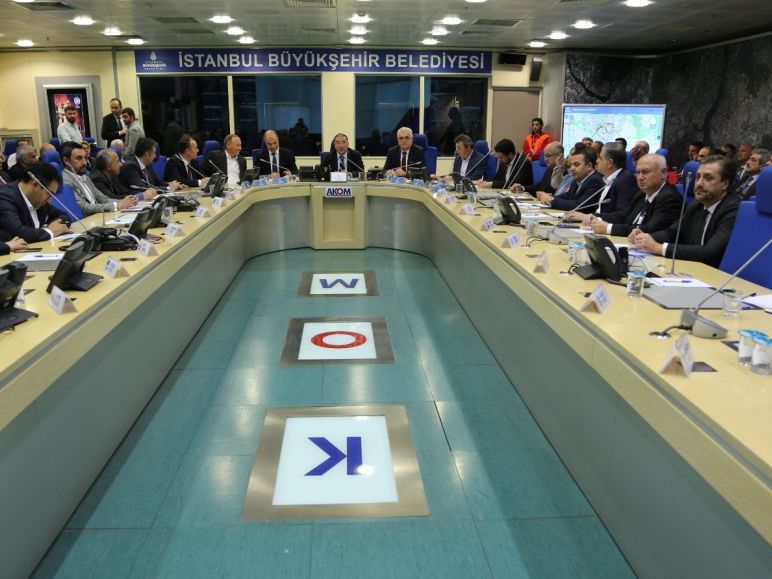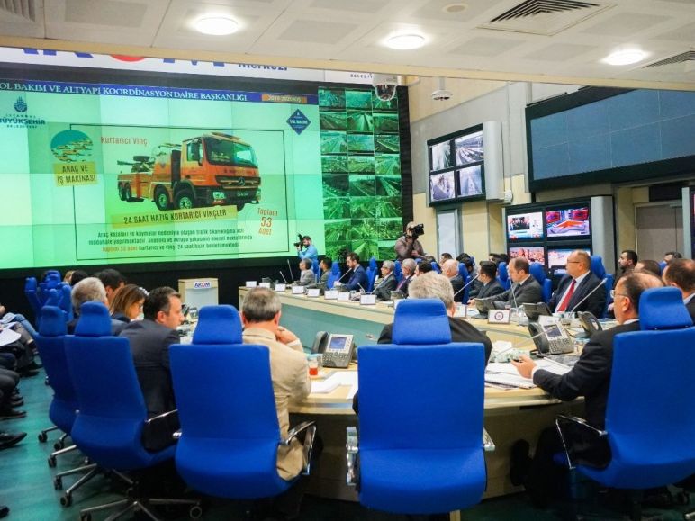 İstanbul Büyükşehir Belediyesi (İBB) 2019-2020 Kışa Hazırlık Çalışmaları toplantısını İBB Genel Sekreter Yardımcısı Murat Yazıcı ve Mehmet Murat Kalkanlı, Yol Bakım ve Altyapı Koordinasyon Daire Başkanı Seyfüllah Demirel, Makine İkmal Müdürü Eyüp Selman Korten ve ilçe belediye temsilcilerinin katılımlarıyla Afet Koordinasyon Merkezi'nde (AKOM) gerçekleşen toplantıda, kış aylarında olması muhtemel kar ve buzlanma ile ilgili mücadele çalışmaları ele alındı.