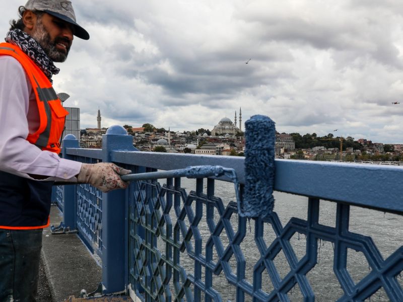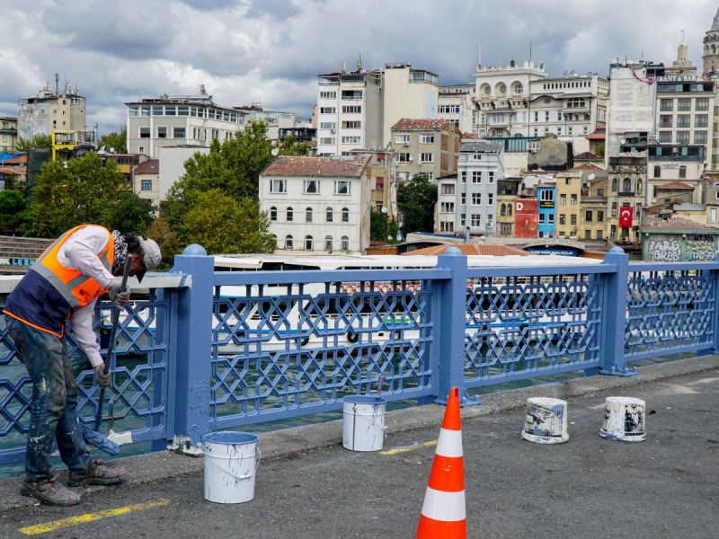 Galata Köprüsü Korkuluklarının Boyama İşlemi Tamamlandı